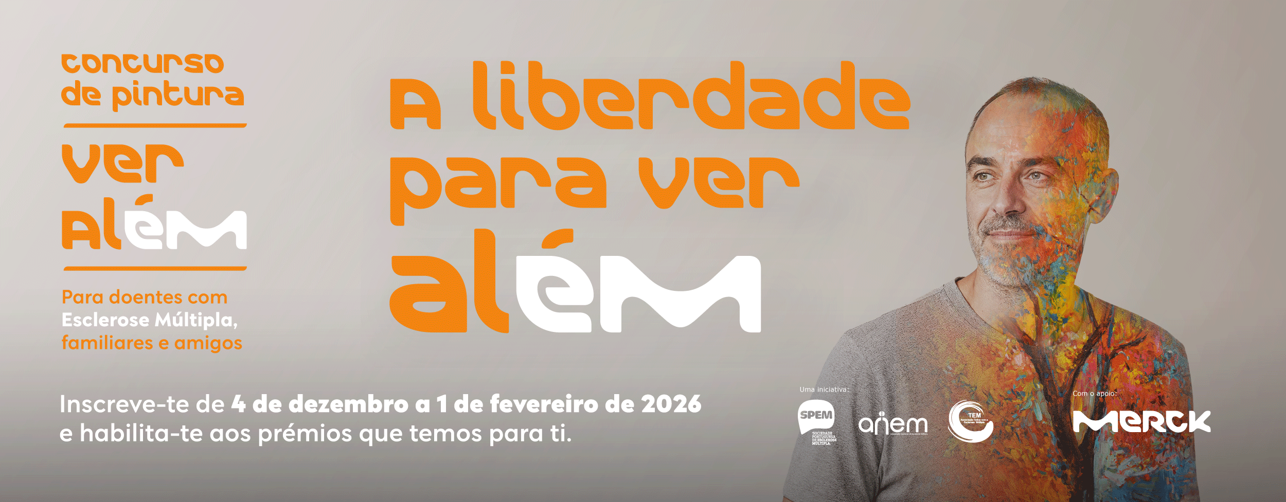Ainda que a Esclerose Múltipla não defina quem vive com este diagnóstico, molda a forma como vê o mundo. O concurso “A Liberdade para Ver alÉM” nasce para dar cor e voz aos sonhos, visões e emoções de quem vive com esta doença, de quem cuida e de quem caminha ao seu lado. Uma iniciativa da Associação Nacional de Esclerose Múltipla (ANEM), Sociedade Portuguesa de Esclerose Múltipla (SPEM) e Associação Todos com a Esclerose Múltipla (TEM), com o apoio da Merck.